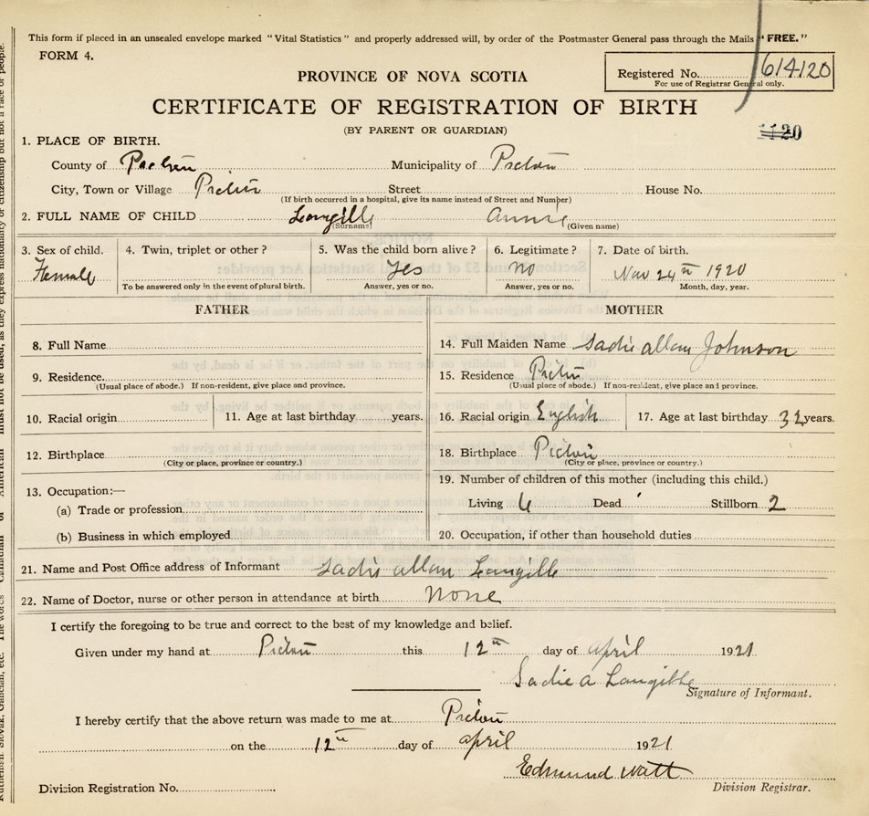Nova Scotia Archives — https://archives.novascotia.ca/vital-statistics/birth/?ID=388087