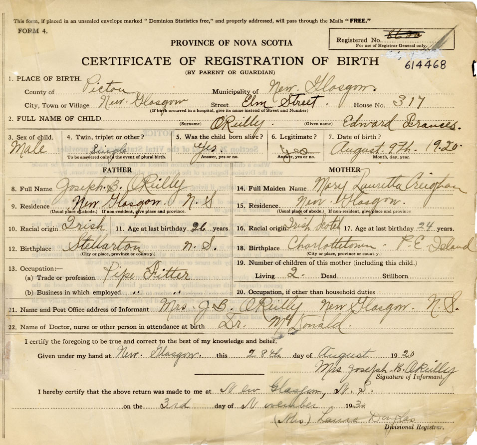 Nova Scotia Archives — https://archives.novascotia.ca/vital-statistics/birth/?ID=388199