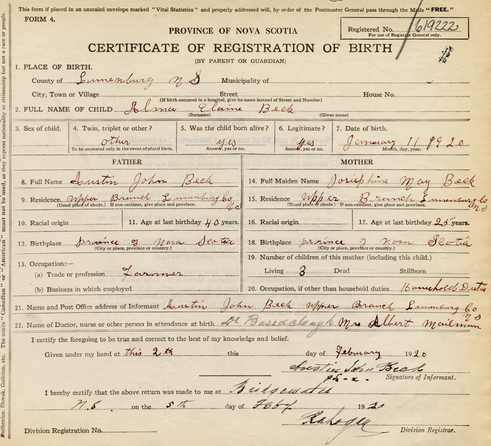Nova Scotia Archives — https://archives.novascotia.ca/vital-statistics/birth/?ID=388219