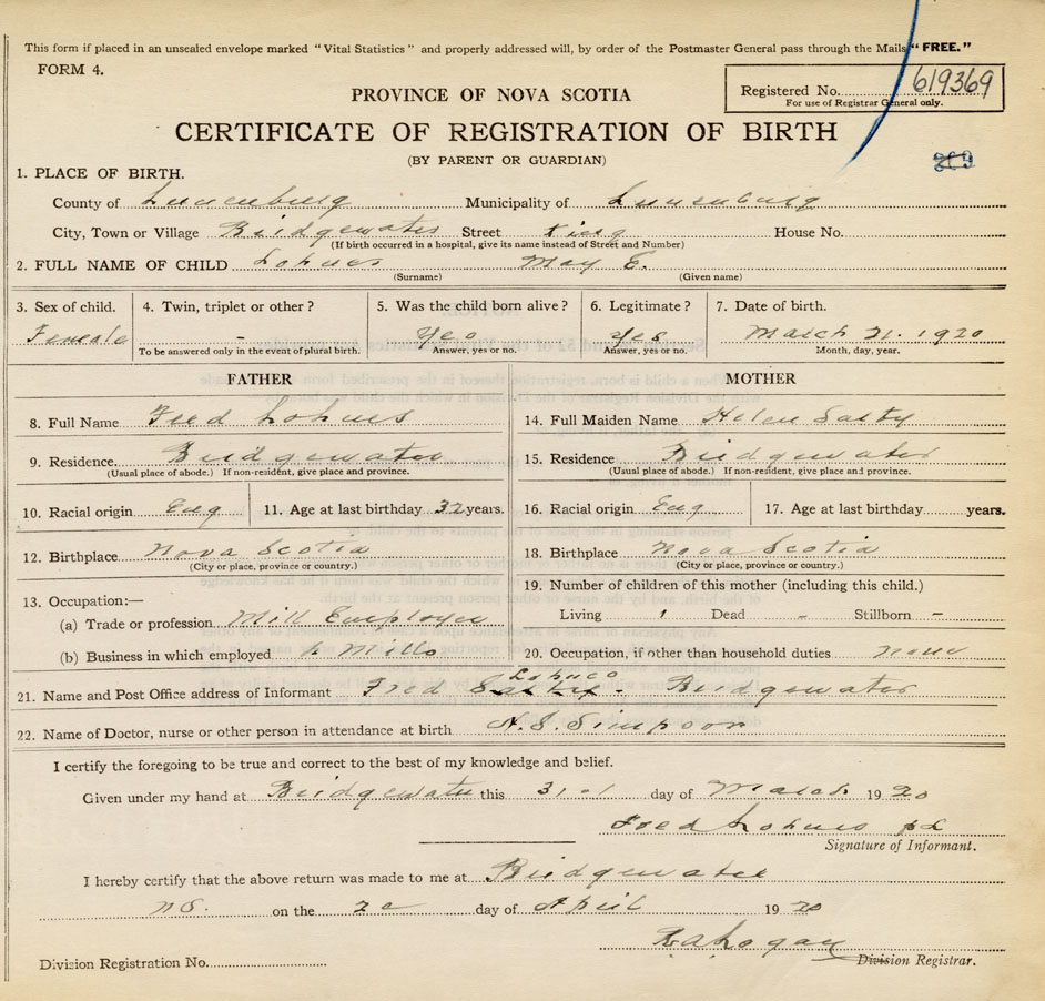Nova Scotia Archives — https://archives.novascotia.ca/vital-statistics/birth/?ID=388365