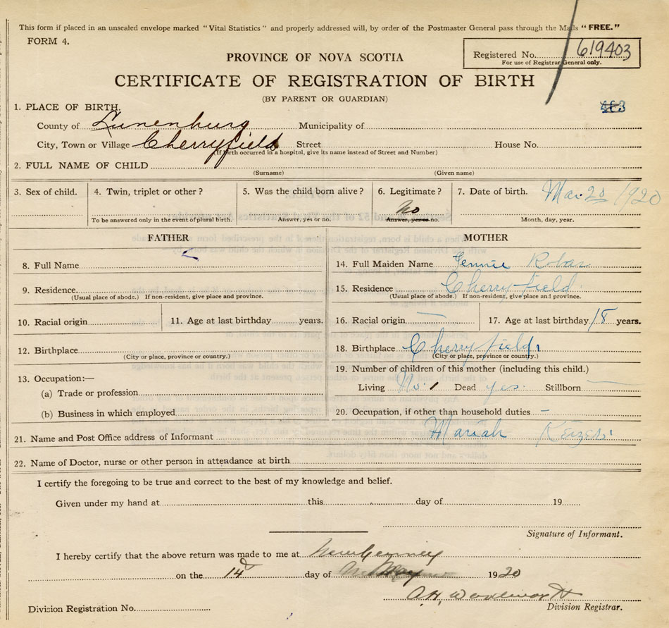 Nova Scotia Archives — https://archives.novascotia.ca/vital-statistics/birth/?ID=388399