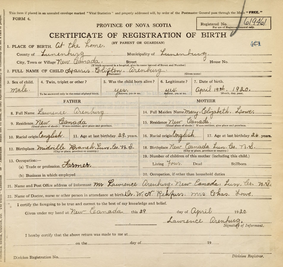 Nova Scotia Archives — https://archives.novascotia.ca/vital-statistics/birth/?ID=388457
