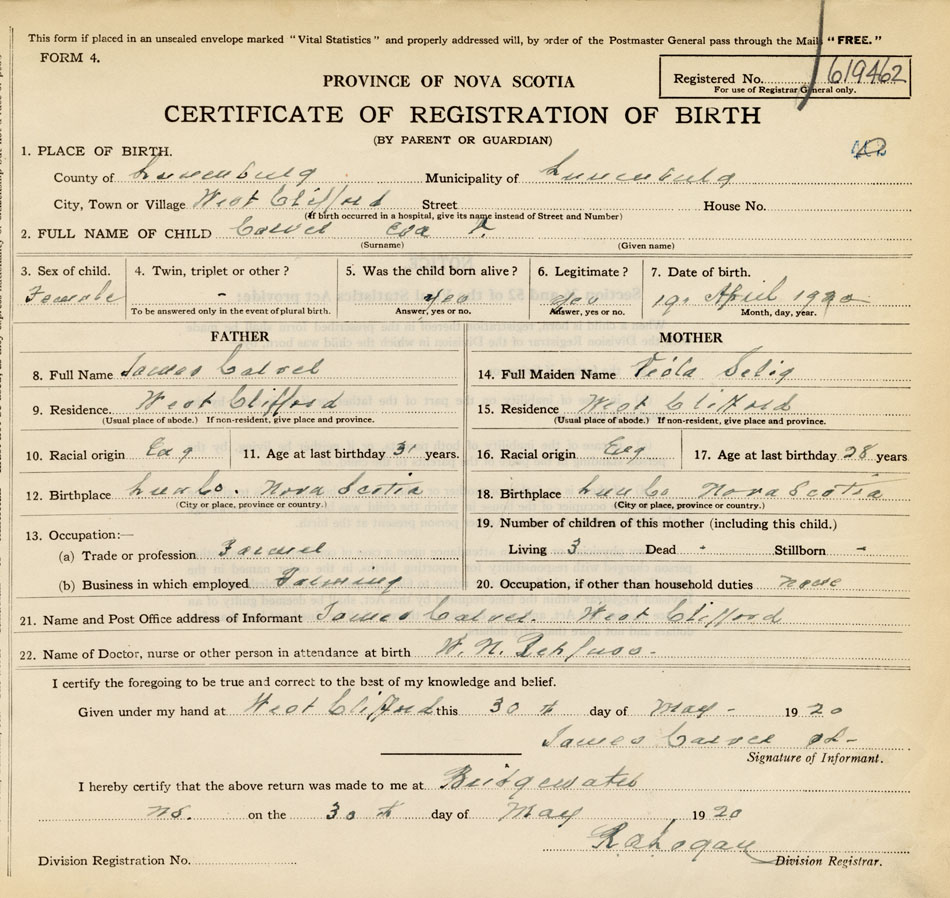 Nova Scotia Archives — https://archives.novascotia.ca/vital-statistics/birth/?ID=388458