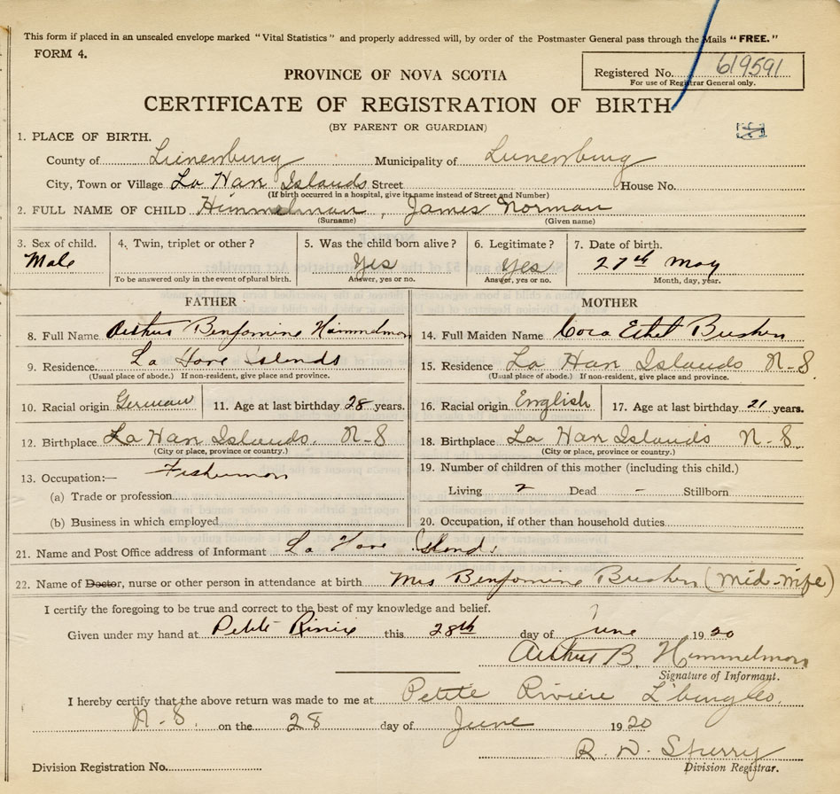 21. Name and Post Office address of Informant Arthur B Himmelman LaHave Islands