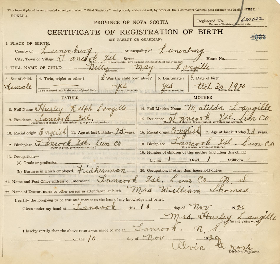 18. Birthplace Tancook Island, Lunenburg County
