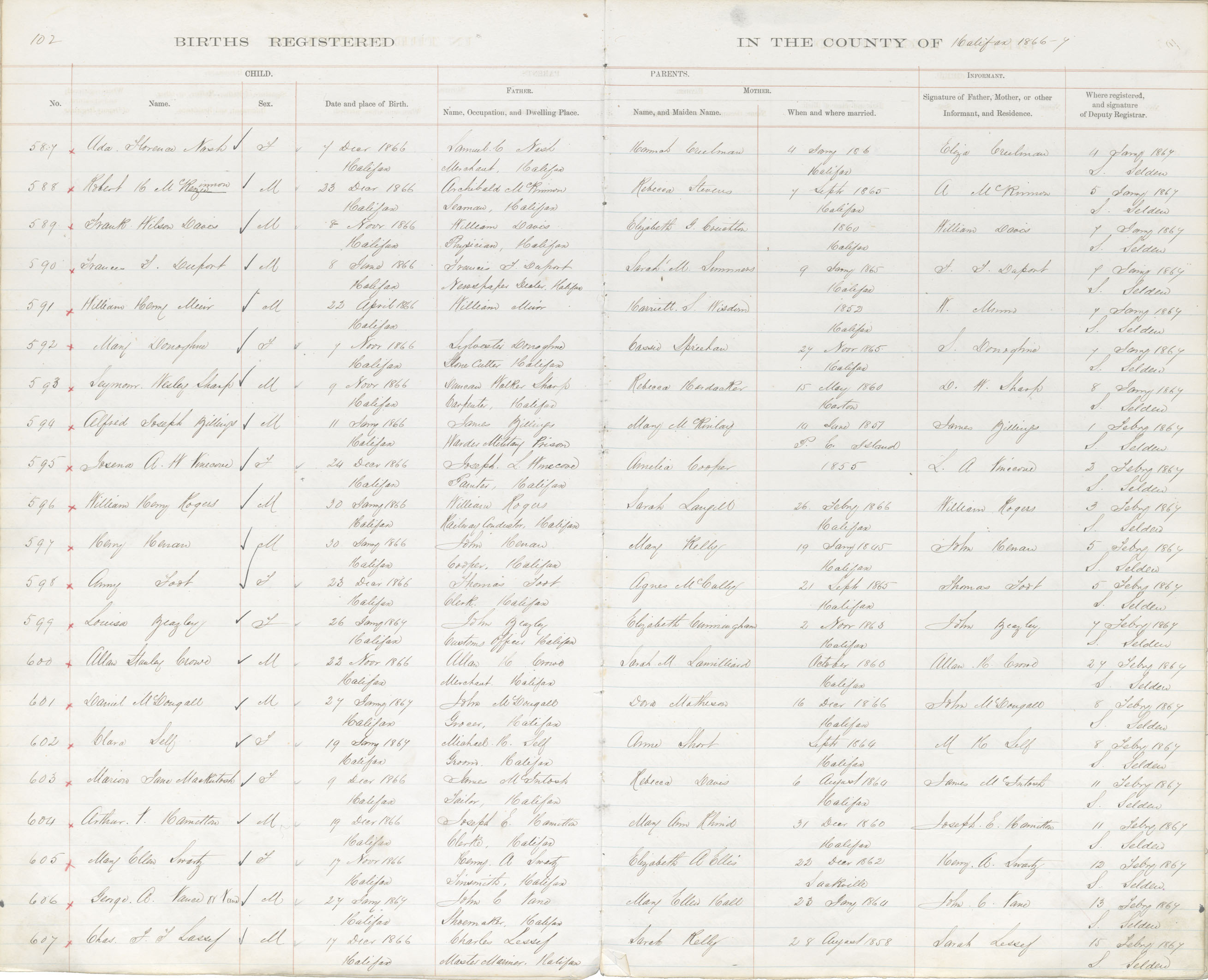 Birth Registration: Year: 1866 book: 1809 page: 102 number: 587