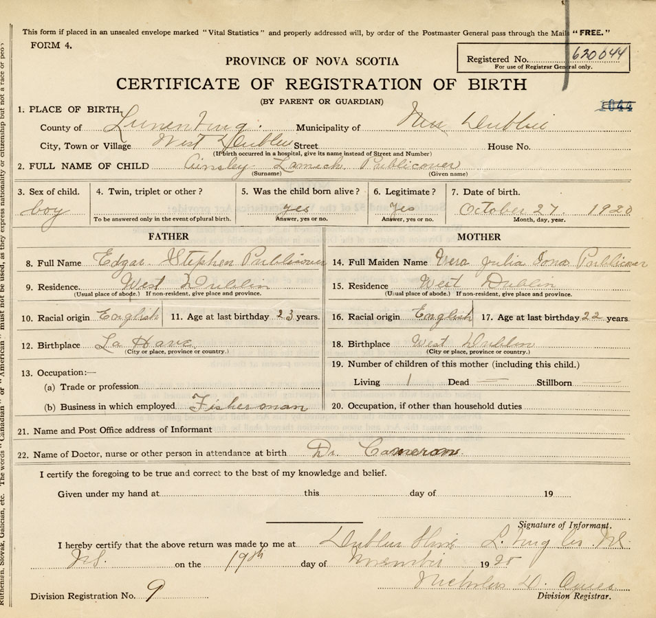 Nova Scotia Archives — https://archives.novascotia.ca/vital-statistics/birth/?ID=389040