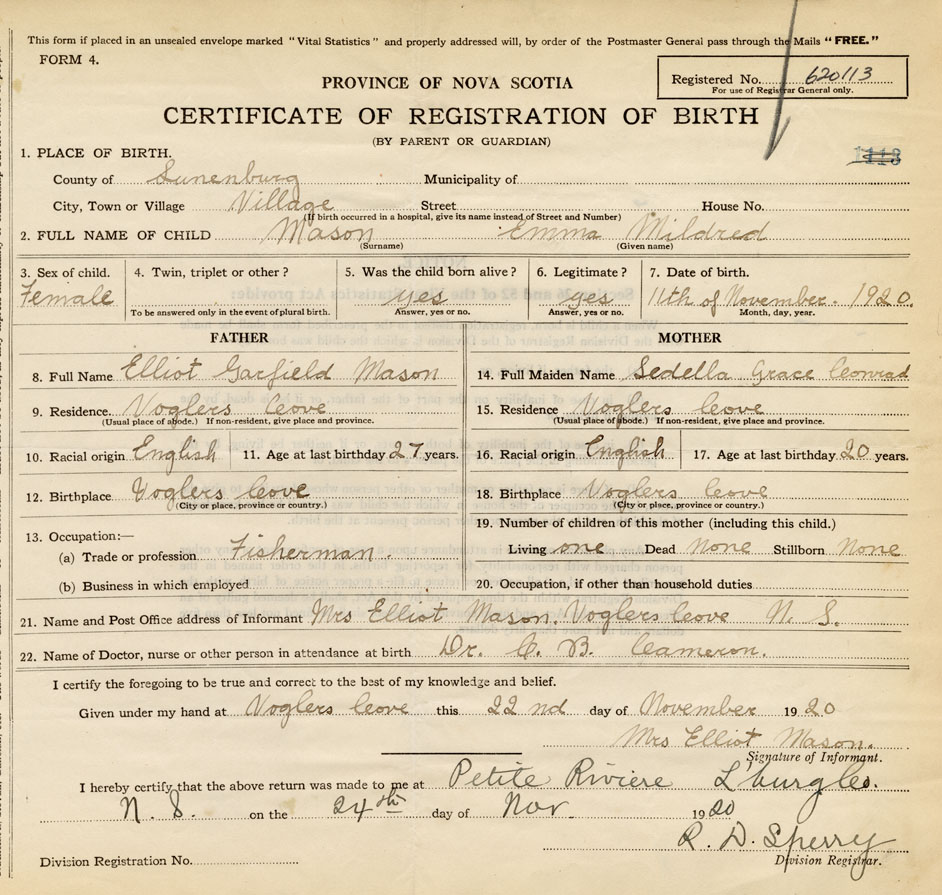 Nova Scotia Archives — https://archives.novascotia.ca/vital-statistics/birth/?ID=389109