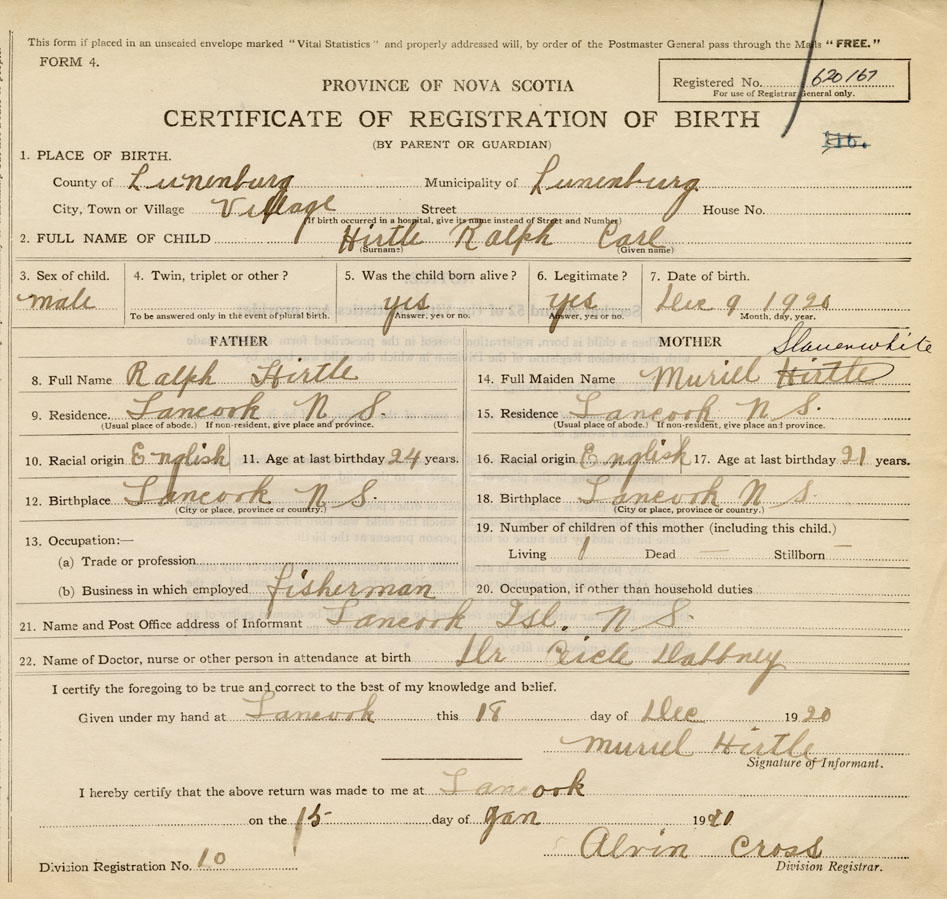 21. Name and Post Office address of Informant Muriel Hirtle Tancook Isl. NS