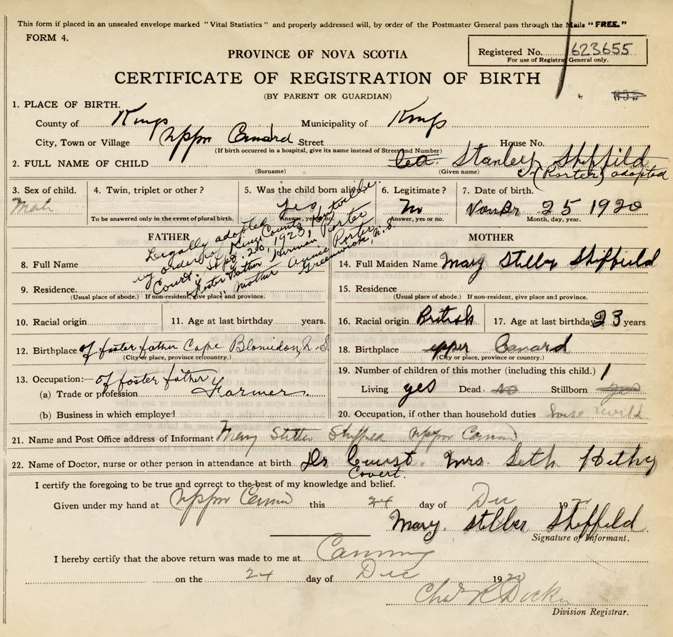 21. Name and Post Office address of Informant Mary Stiller Sheffield Upper Canard