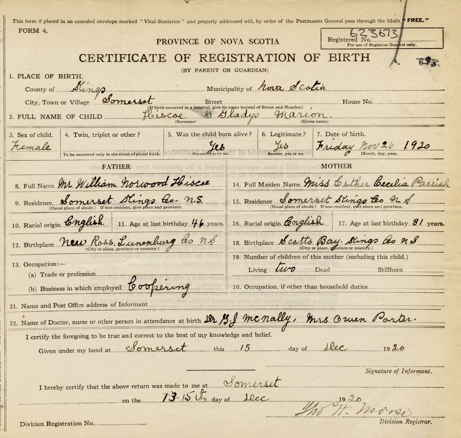 Nova Scotia Archives — https://archives.novascotia.ca/vital-statistics/birth/?ID=389714