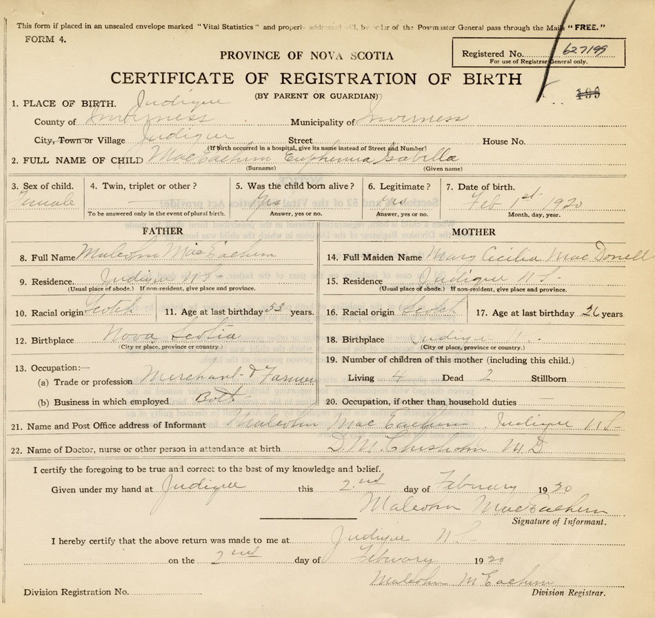Nova Scotia Archives — https://archives.novascotia.ca/vital-statistics/birth/?ID=389814
