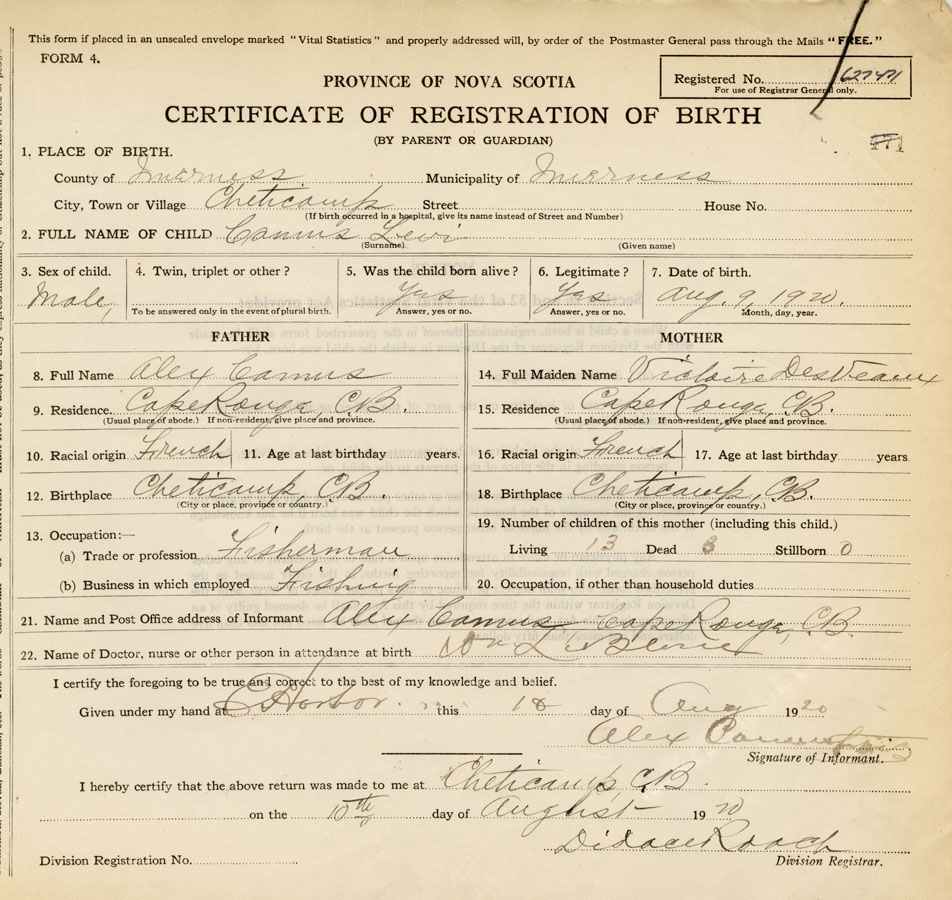 21. Name and Post Office address of Informant Alex Camus Cape Rouge
