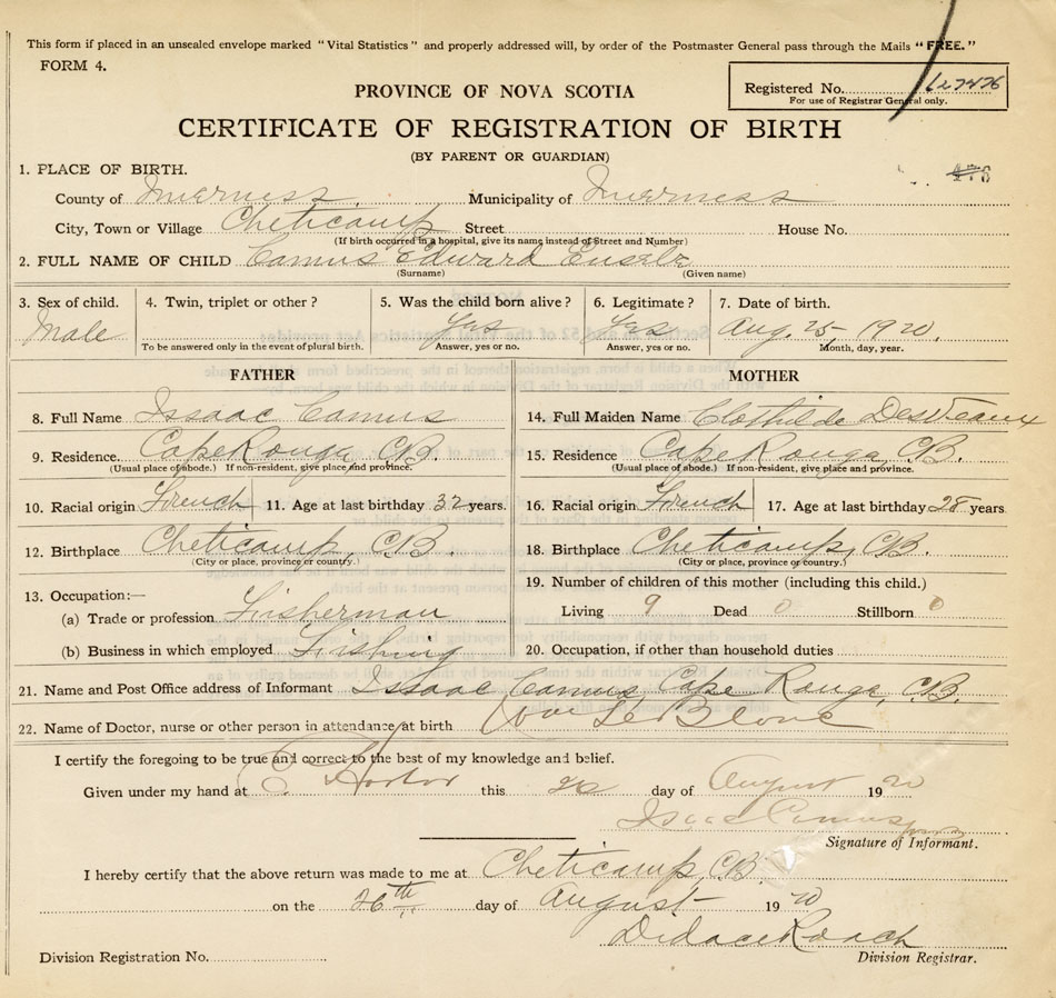21. Name and Post Office address of Informant Isaac Camus Cape Rouge