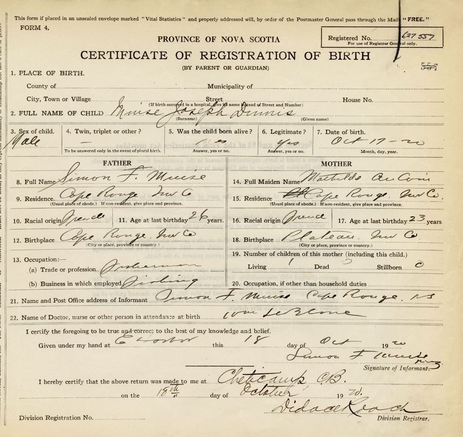 21. Name and Post Office address of Informant Simon F. Muise Cape Rouge