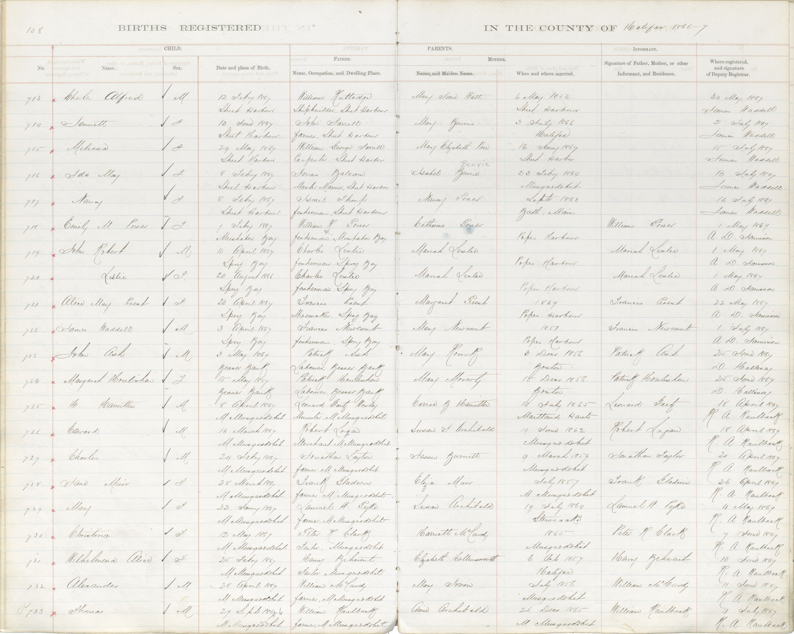 Birth Registration: Year: 1867 book: 1809 page: 108 number: 713
