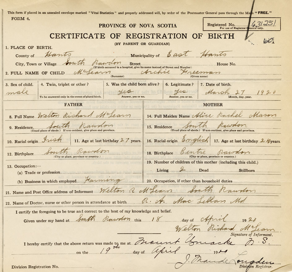 Nova Scotia Archives — https://archives.novascotia.ca/vital-statistics/birth/?ID=390407