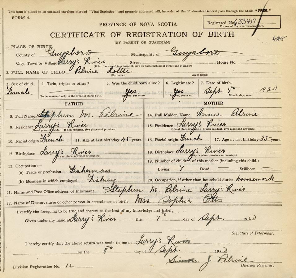 Nova Scotia Archives — https://archives.novascotia.ca/vital-statistics/birth/?ID=391132
