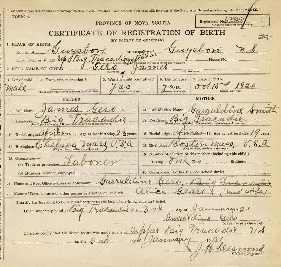 21. Name and Post Office address of Informant Garraldine Gero Big Tracadie