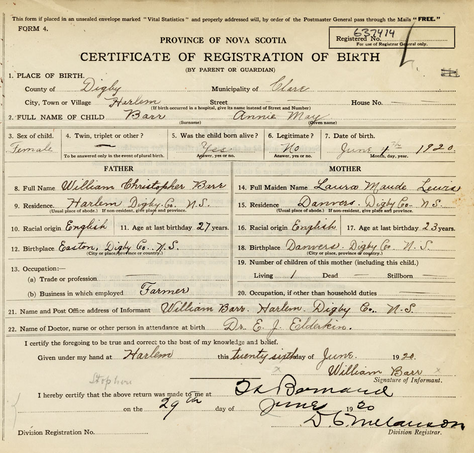 Nova Scotia Archives — https://archives.novascotia.ca/vital-statistics/birth/?ID=391514