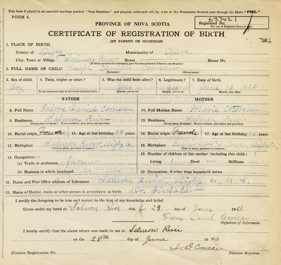 18. Birthplace Belliveaus Cove, Digby Co.