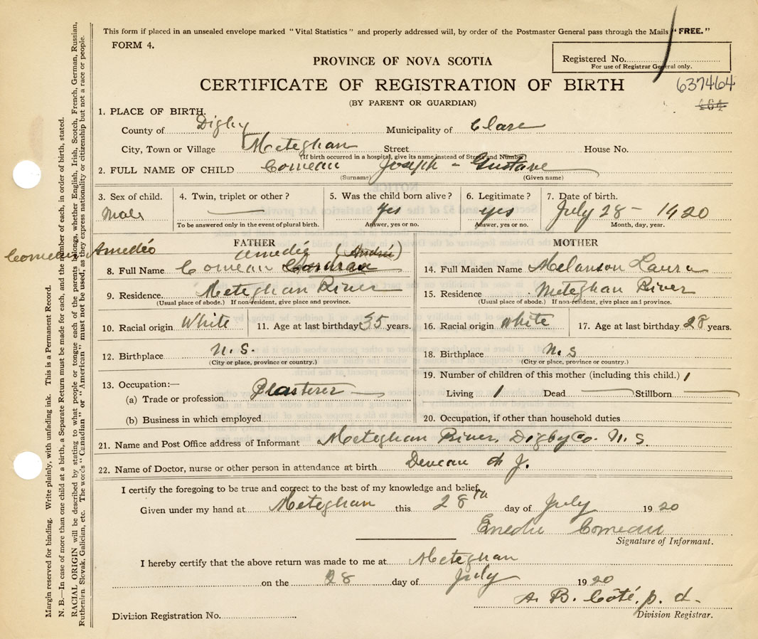 Nova Scotia Archives — https://archives.novascotia.ca/vital-statistics/birth/?ID=391563
