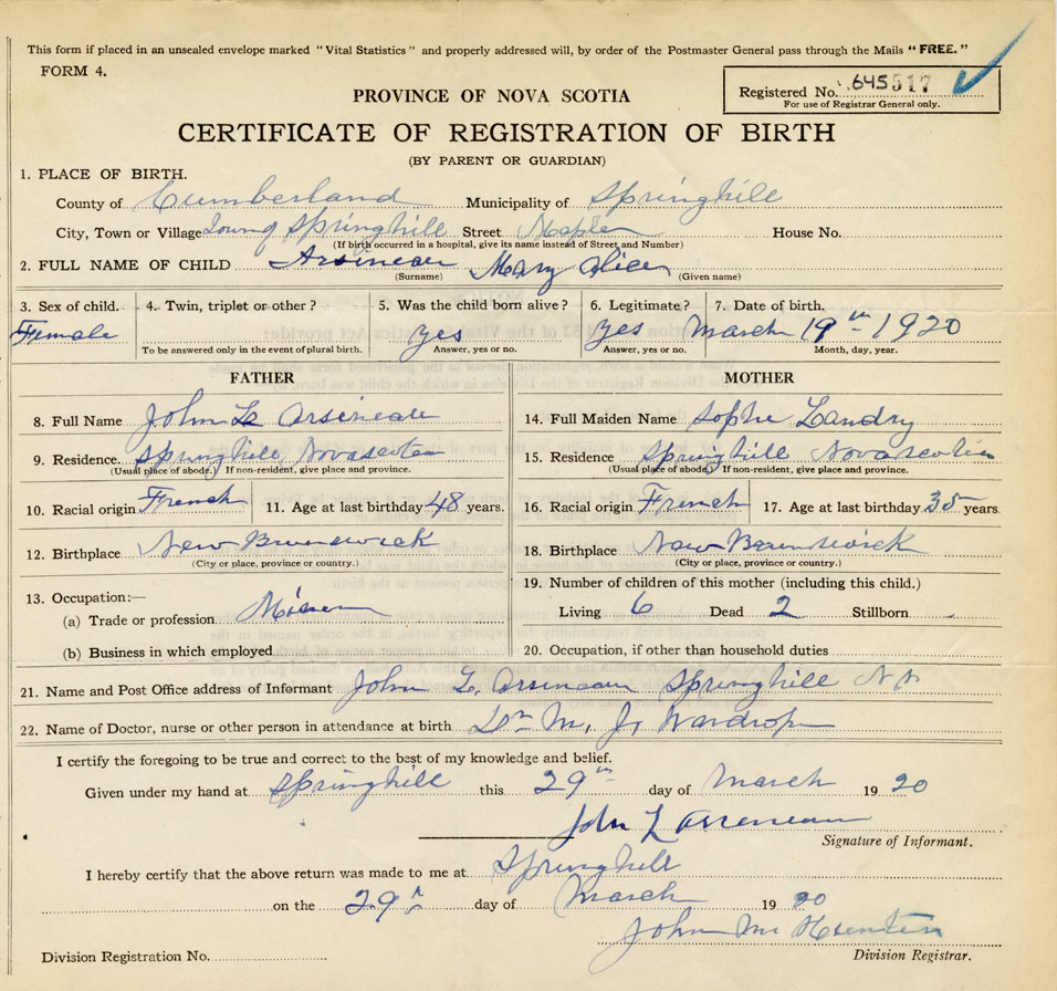Nova Scotia Archives — https://archives.novascotia.ca/vital-statistics/birth/?ID=392034
