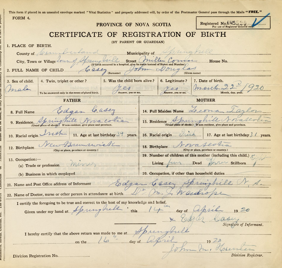 21. Name and Post Office address of Informant Edgar Casey Springhill