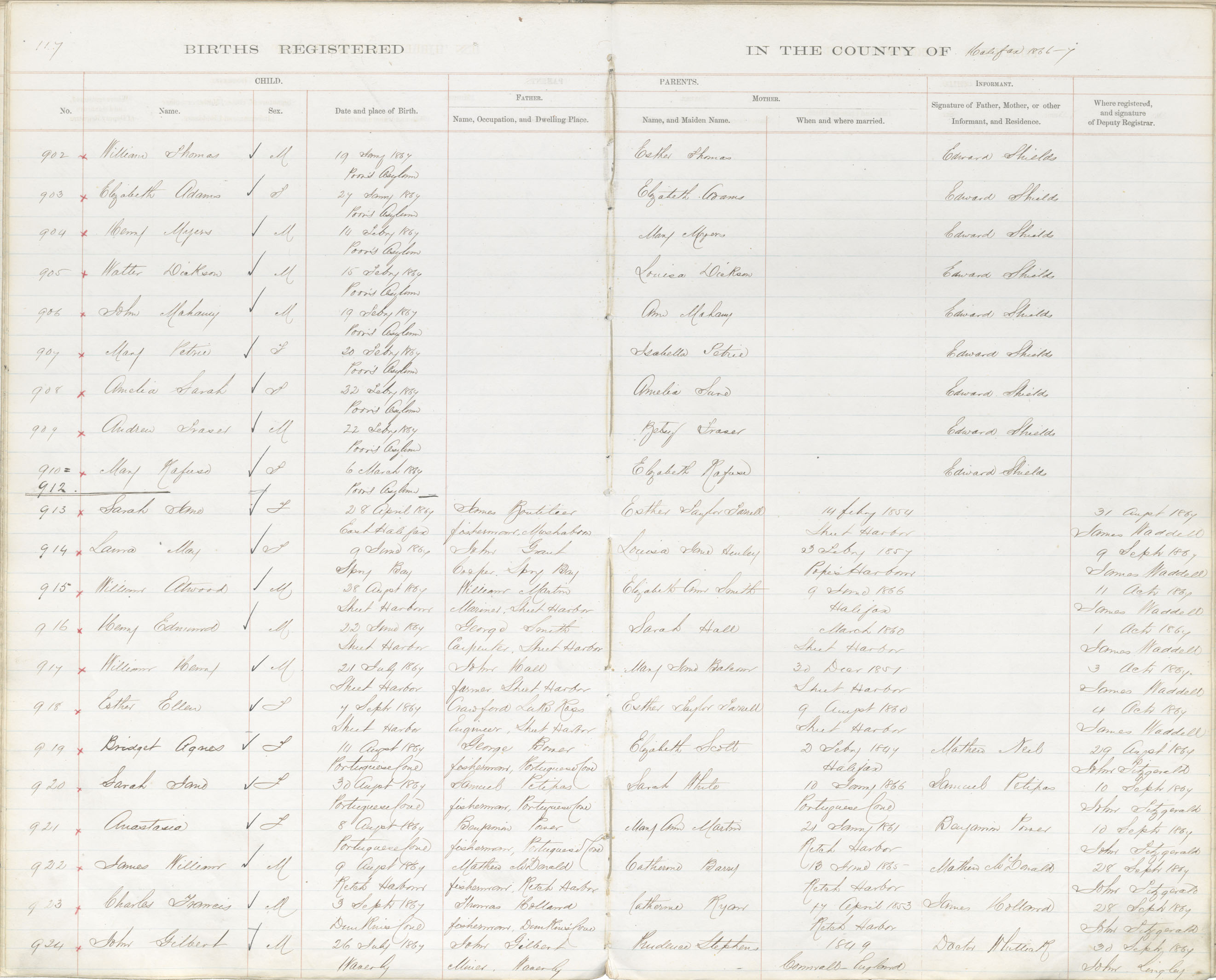 Birth Registration: Year: 1867 book: 1809 page: 117 number: 902