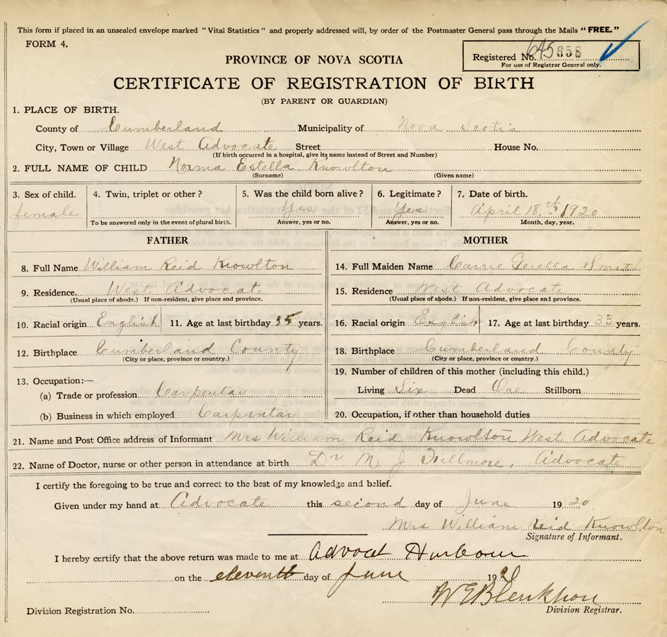 Nova Scotia Archives — https://archives.novascotia.ca/vital-statistics/birth/?ID=392175