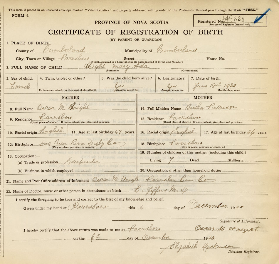 Nova Scotia Archives — https://archives.novascotia.ca/vital-statistics/birth/?ID=392352