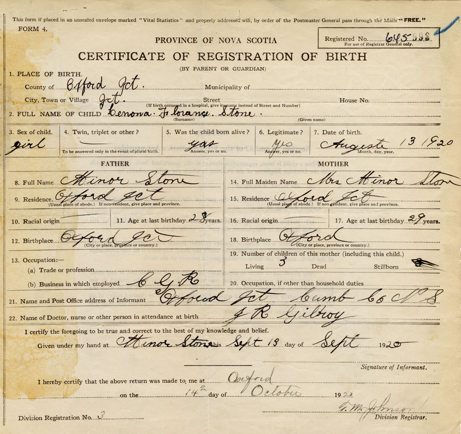 21. Name and Post Office address of Informant Minor Stone Oxford Junction
