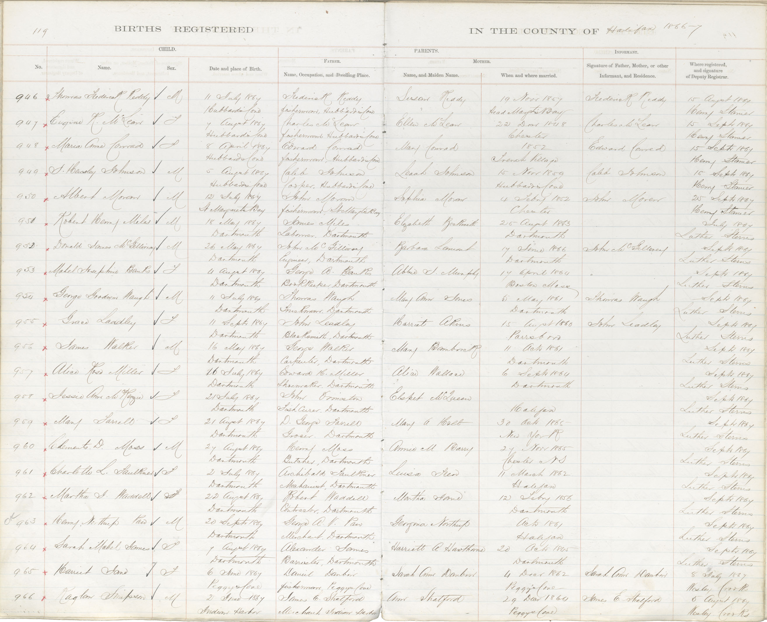 Birth Registration: Year: 1867 book: 1809 page: 119 number: 946