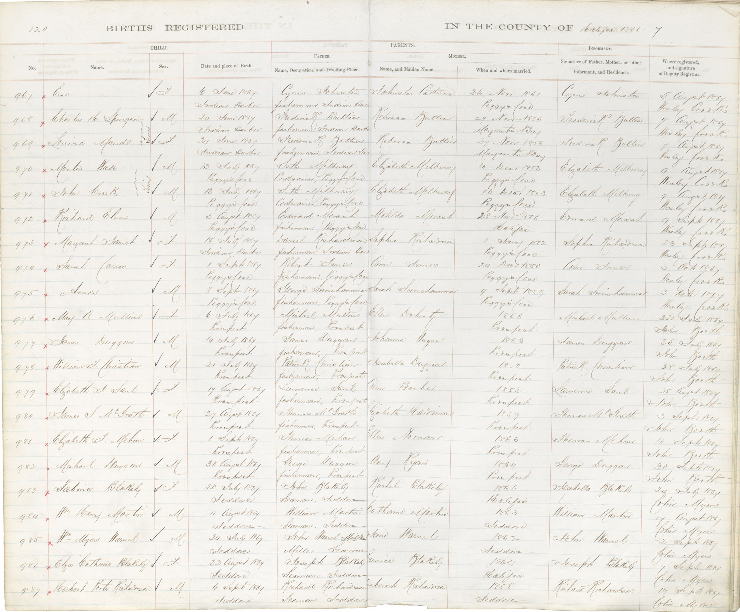 Birth Registration: Year: 1867 book: 1809 page: 120 number: 967