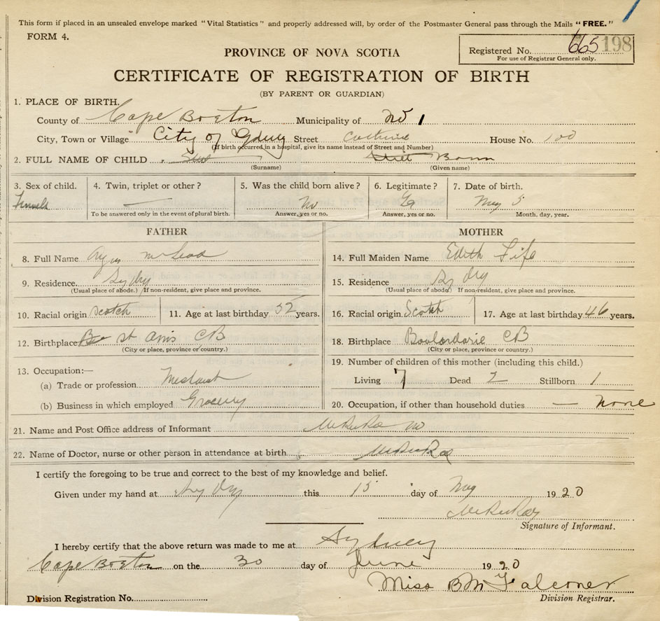 Nova Scotia Archives — https://archives.novascotia.ca/vital-statistics/birth/?ID=394877
