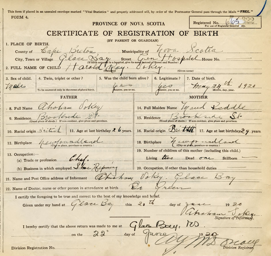 21. Name and Post Office address of Informant Abraham Vokey Glace Bay