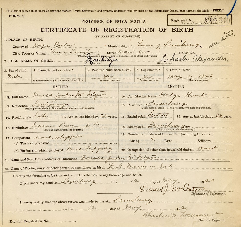 2. FULL NAME OF CHILD MacIntyre, Charles Alexander