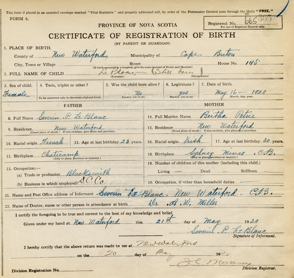 Nova Scotia Archives — https://archives.novascotia.ca/vital-statistics/birth/?ID=395044