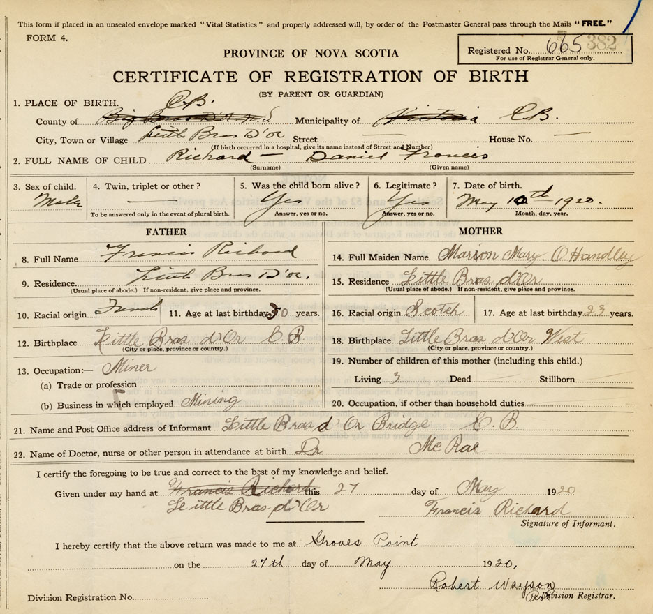21. Name and Post Office address of Informant Francis Richard Little Bras d'Or Bridge