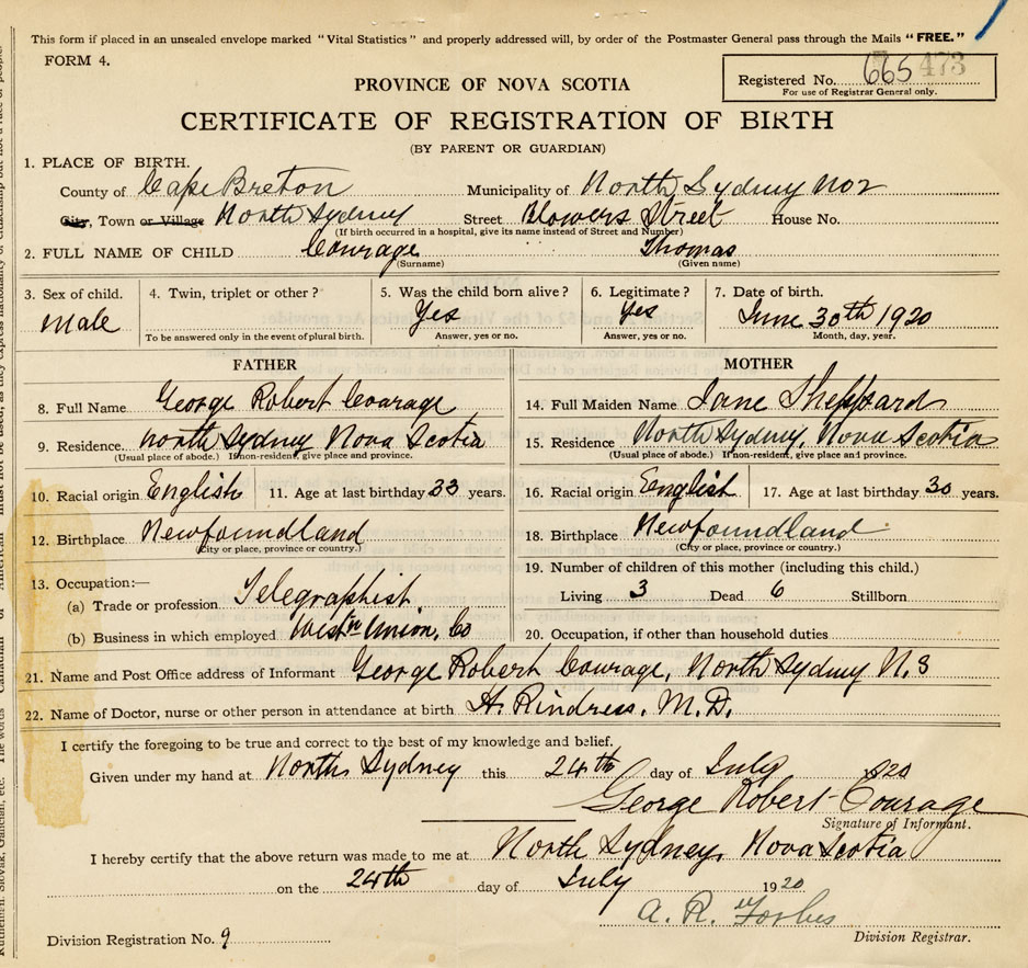 21. Name and Post Office address of Informant George Robert Courage North Sydney