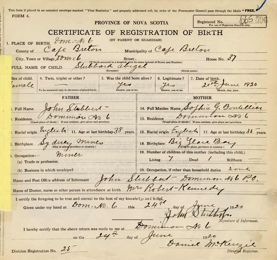 Nova Scotia Archives — https://archives.novascotia.ca/vital-statistics/birth/?ID=395275