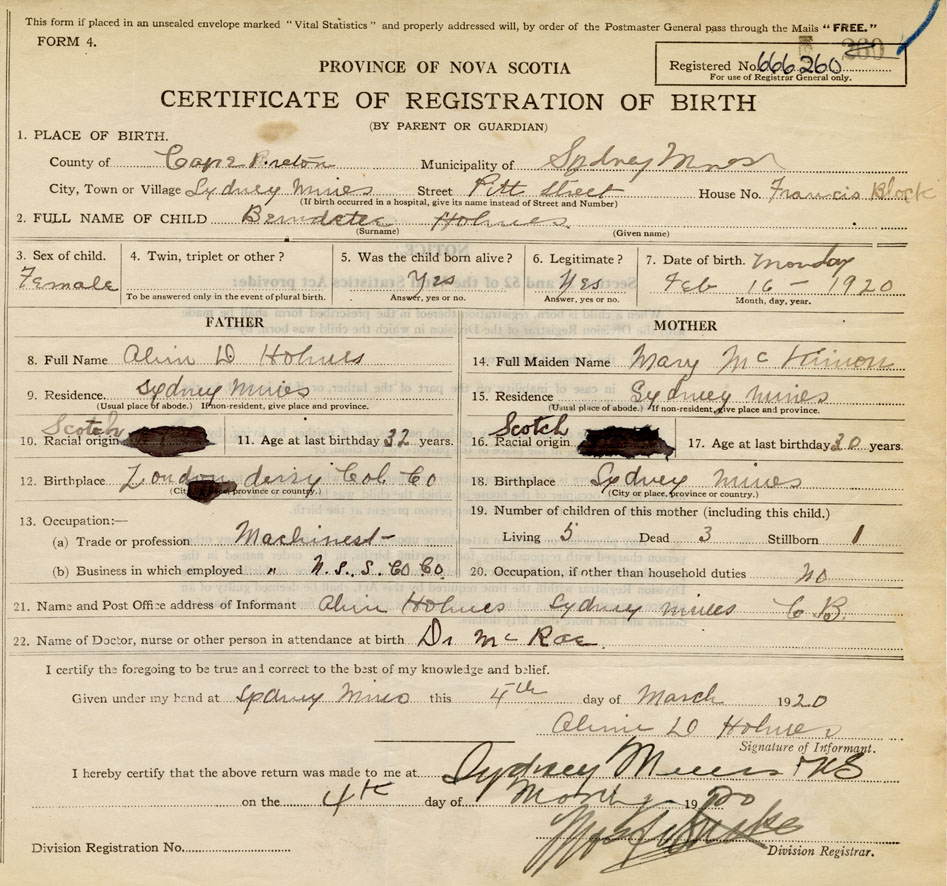 18. Birthplace Sydney Mines, Cape Breton Co.