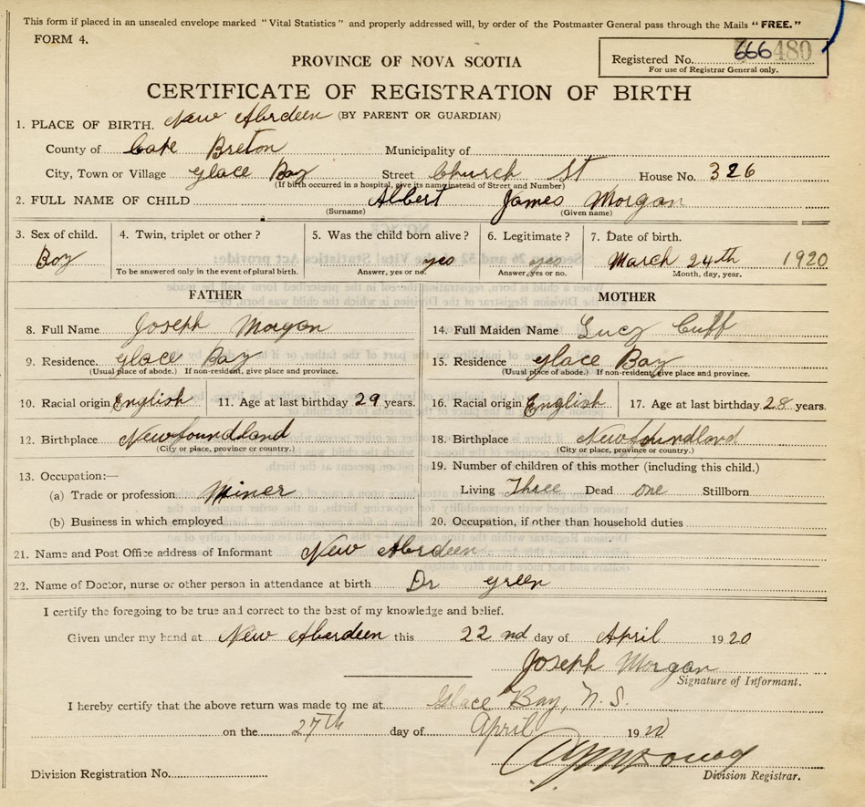 Male Birth Registration: Year: 1920 number: 66600480