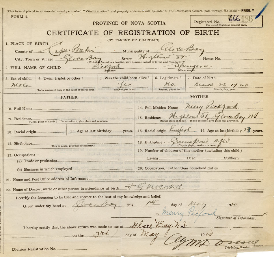Male Birth Registration: Year: 1920 number: 66600486