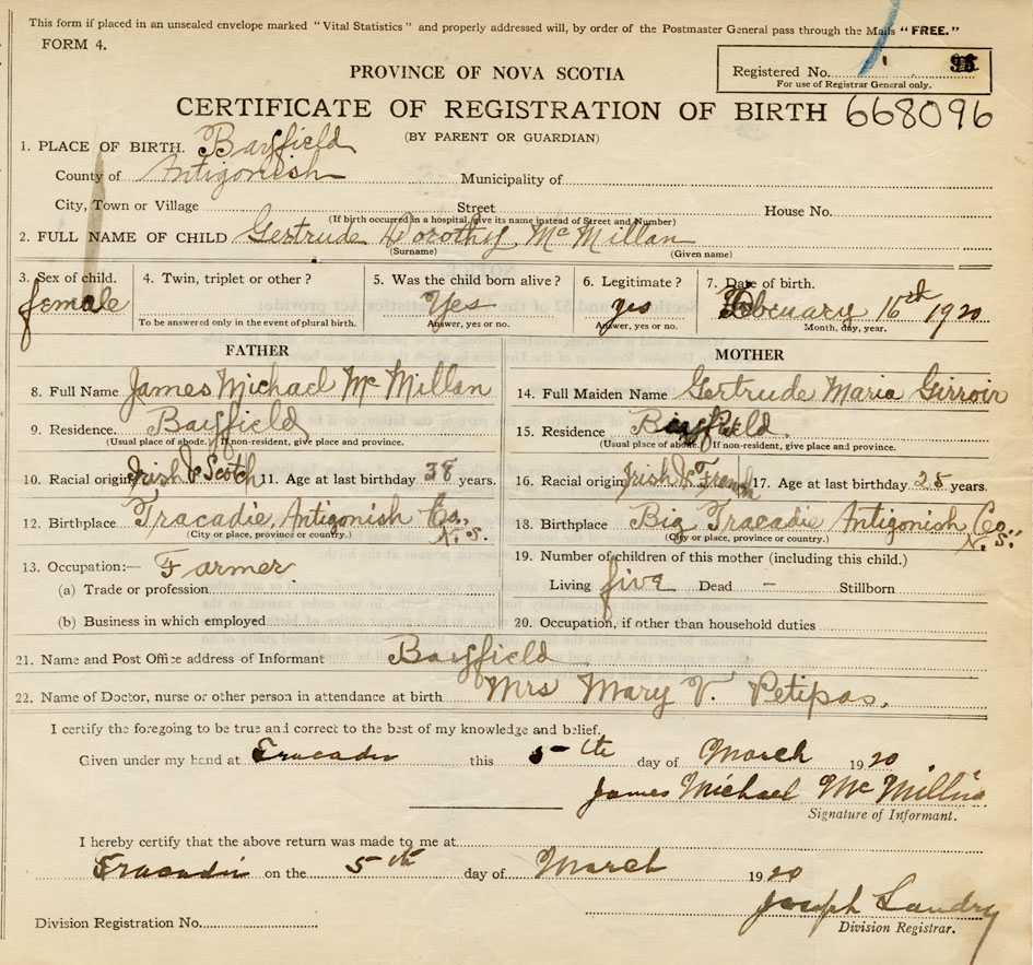Nova Scotia Archives — https://archives.novascotia.ca/vital-statistics/birth/?ID=395903