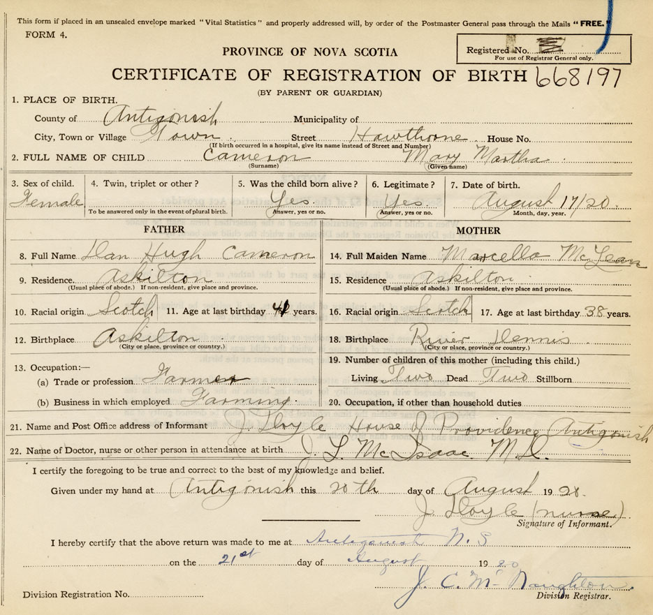 Nova Scotia Archives — https://archives.novascotia.ca/vital-statistics/birth/?ID=396004