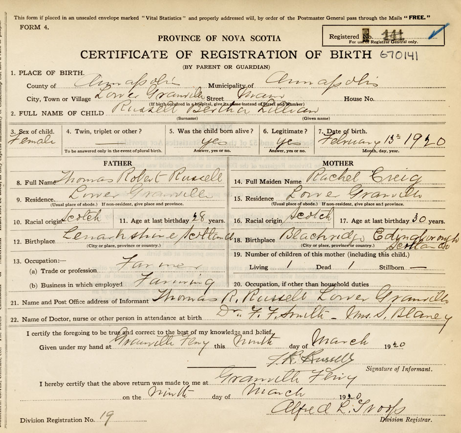 Nova Scotia Archives — https://archives.novascotia.ca/vital-statistics/birth/?ID=396137