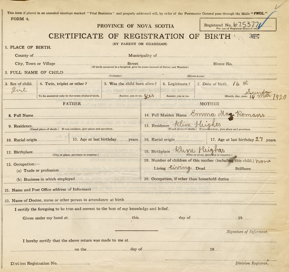 Nova Scotia Archives — https://archives.novascotia.ca/vital-statistics/birth/?ID=396661