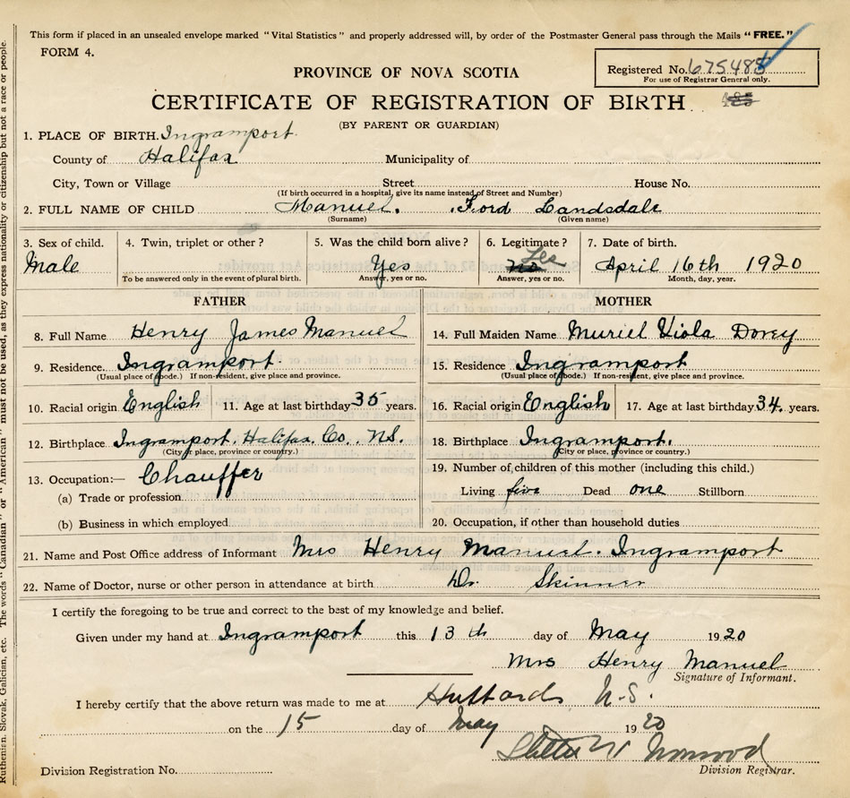 Male Birth Registration: Year: 1920 number: 67500485