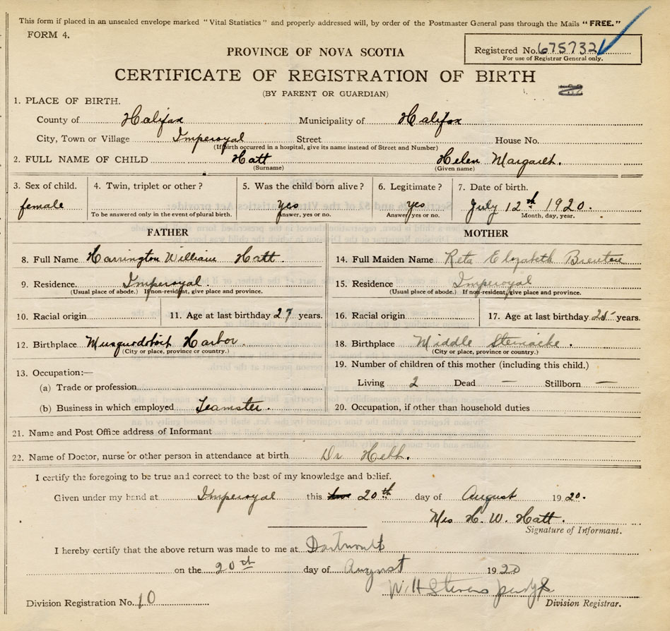 Nova Scotia Archives — https://archives.novascotia.ca/vital-statistics/birth/?ID=397013